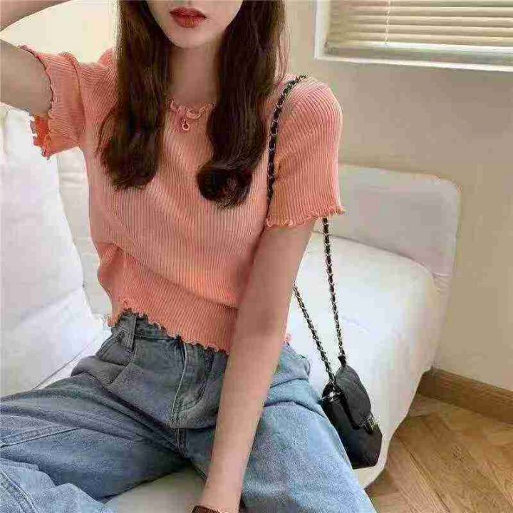 靓妹款木耳边冰丝针织衫,数量:310件,码数:XS-S-M-...