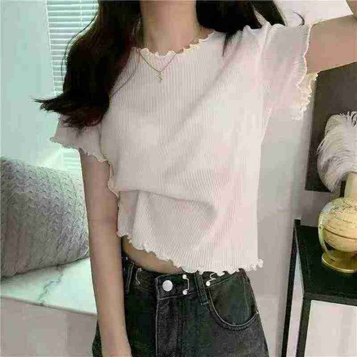 靓妹款木耳边冰丝针织衫,数量:310件,码数:XS-S-M-...