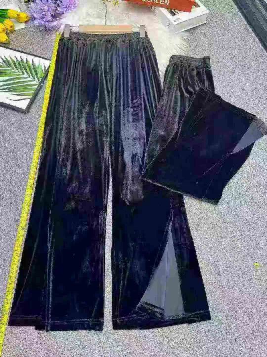 金丝绒秋冬新款垂坠感高腰显瘦百搭宽松高腰休闲开叉阔腿裤,独立包装,弹力大,码数S-4XL(1-7),数量331条,(货号0914#48)