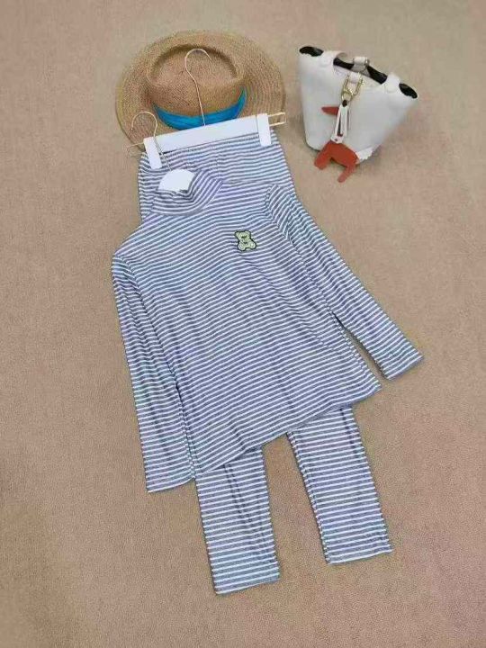 [月亮]:潮童刺绣小熊条纹德绒保暖打底家居套装