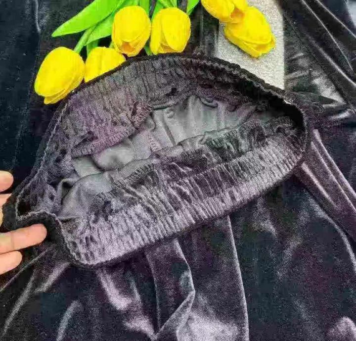 全清价7.9元金丝绒秋冬新款垂坠感高腰显瘦百搭宽松高...