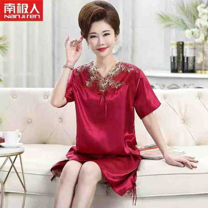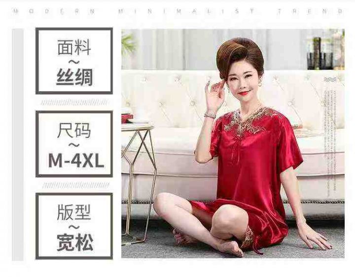 ① 仿真丝冰丝韩版大码外穿家居睡裙!独立包装,整款...