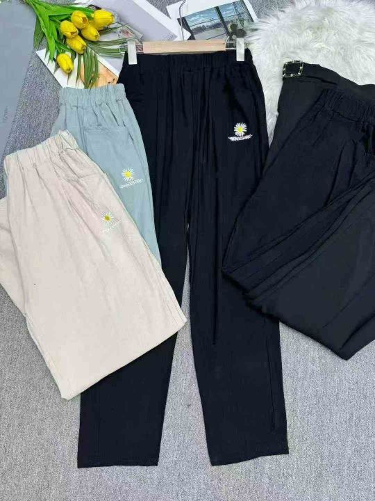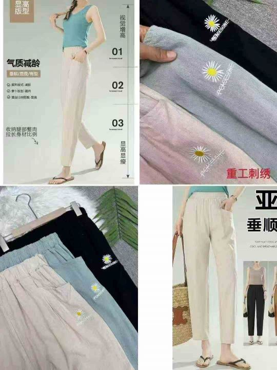 捡漏309条刺绣菊花麻棉休闲修身女裤冰丝直筒裤,独立包装,码数M-3XL(1-5),大货图四款为主,货号118#4