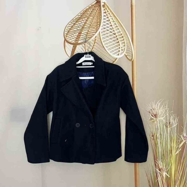 6.8清75件女短款呢子外套女装春秋冬季韩版翻领修身休闲长袖双排扣毛呢外套 S-2XL 独立包装