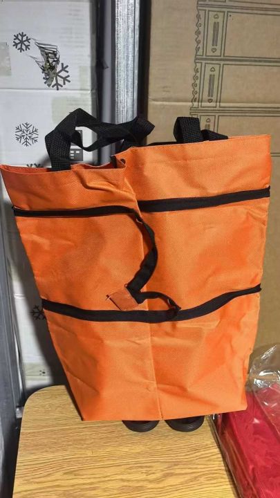 折叠式牛津补防水购物包,带轮可拉,尺寸:39*45㎝,600个左右 几块
