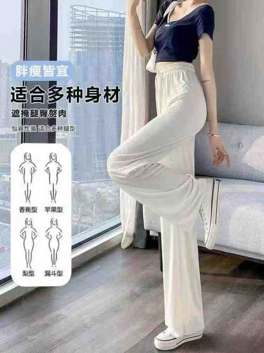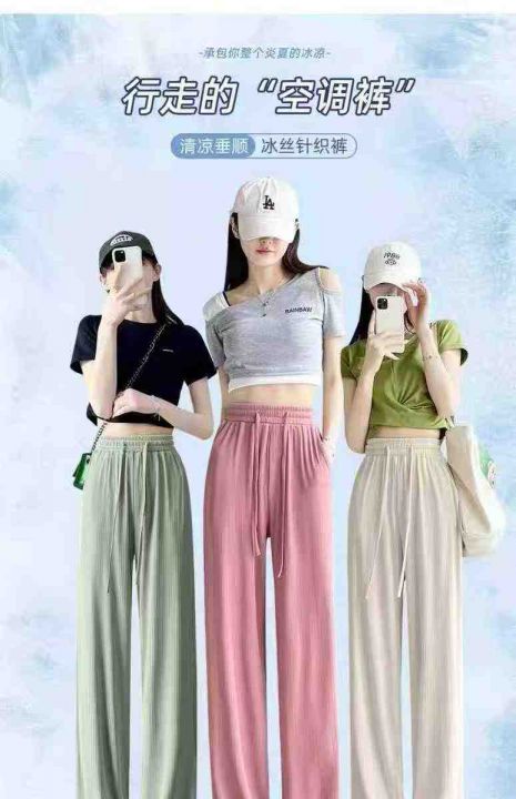 418件高腰垂感系绳宽松直筒冰丝阔腿裤,面料柔顺有质...
