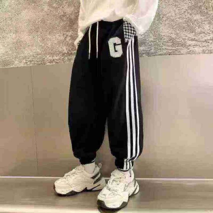 天猫在售款800件左右高品质中大童棉质刺绣束脚运动休闲卫裤,单款两色,码数120-170,独立包装带吊牌