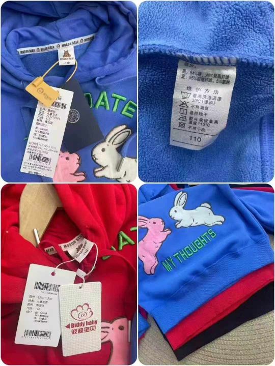 亏本清仓,不议价1869件高品质兔子刺绣连帽加绒儿童卫...