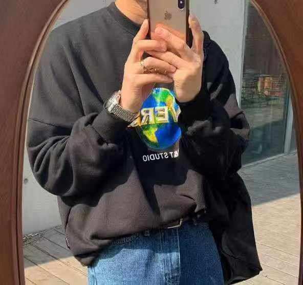 秋冬装男女同款长袖圆领卫衣套头纯棉印花潮黑色高品质卫衣,休闲百搭,100件起分货14.8