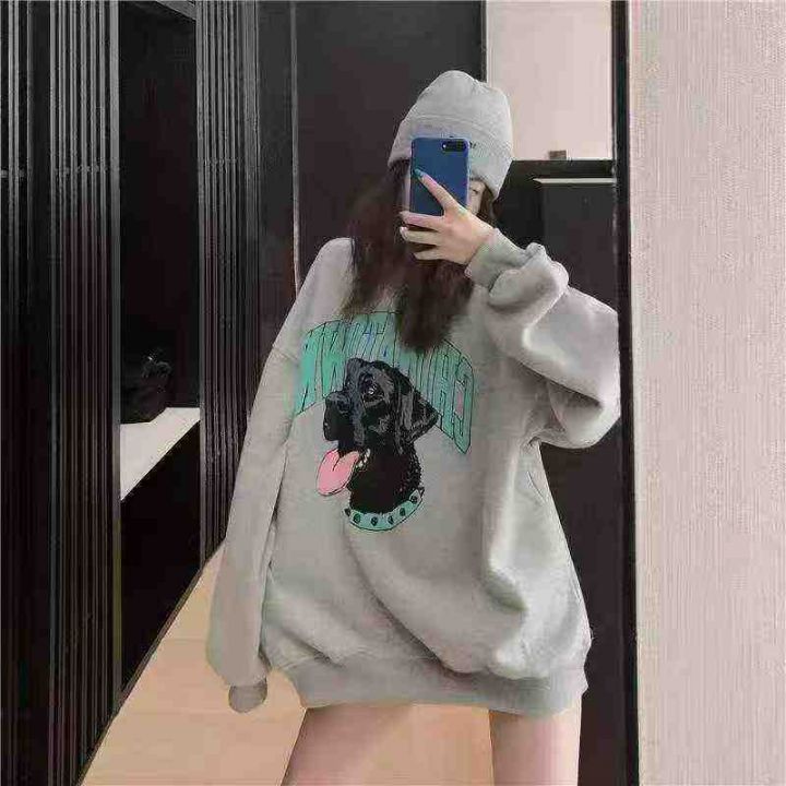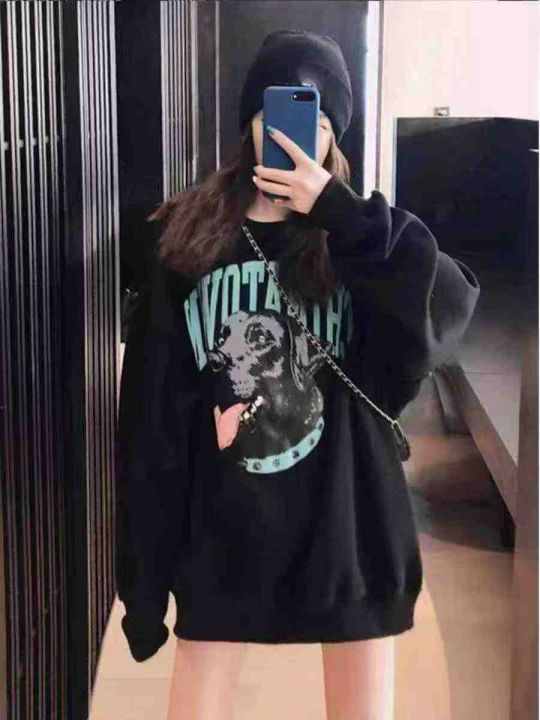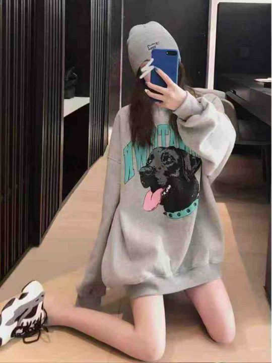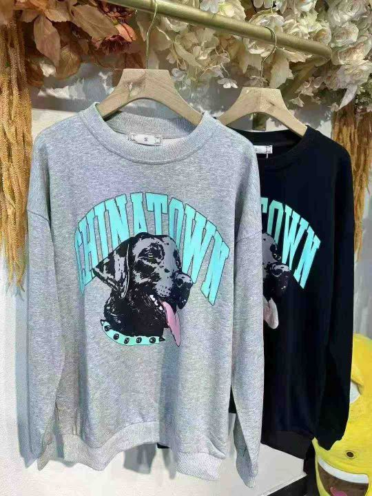 卫衣女薄款2025新款美式复古宽松慵懒风圆领上衣狗狗字母印花,面料舒适,后领包边,上身效果巨巨巨好看[666]独立包装,带吊牌。100/200件起多款混配13.3