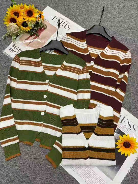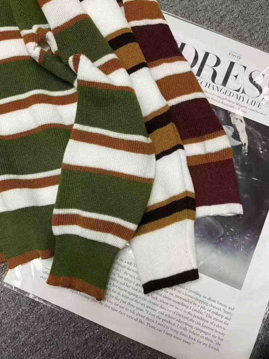 秋冬新款复古条纹撞色气质显瘦高级感针织毛衣开衫,独...