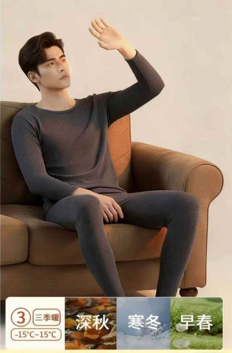 12800套雅鹿品牌男款AB面德绒无痕保暖套装,尺码L~4X...