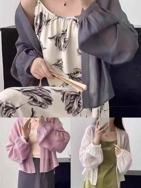 5.8元清复古雪纺开衫空调防晒衫,两个整款大同小异,...
