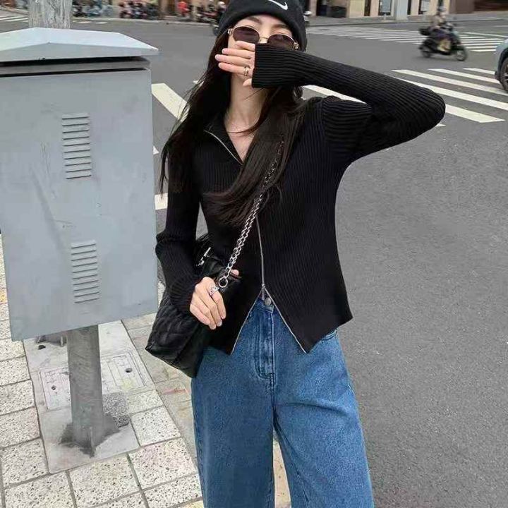 秋冬新款美拉德色系韩版弹力宽松百搭双头拉链针织毛衣...