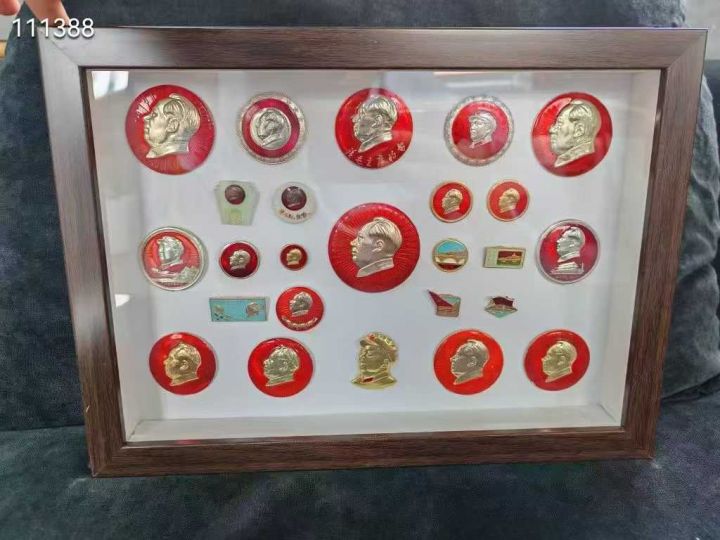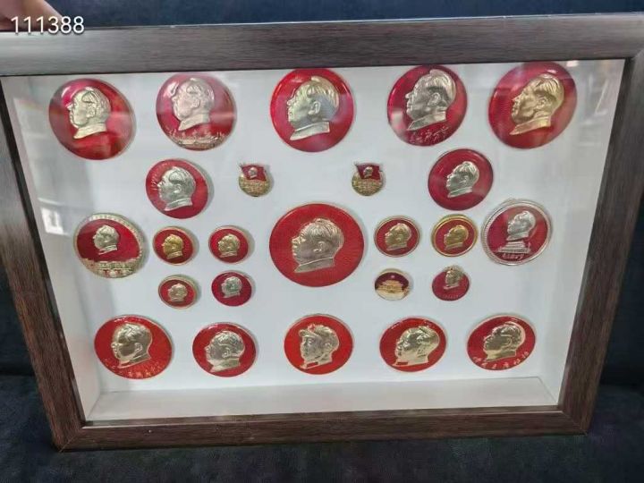 文革时期毛主席像章 一盒25枚毛主席像章 每枚绝对包老包真 相框长32厘米。宽24厘米 摆着办公桌上也可以挂在墙上 25枚一个相框850元包邮 喜欢哪个截图给我