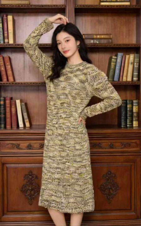 秋冬新款净版简约宽松百搭针织毛衣连衣裙,独立包装,均码年龄软糯舒适弹力...