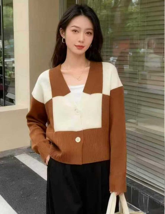 秋季新品撞色拼接针织毛衣开衫,独立包装,均码面料柔软舒适弹力大,430件,全清6.9元超低价秒杀!分货加一!