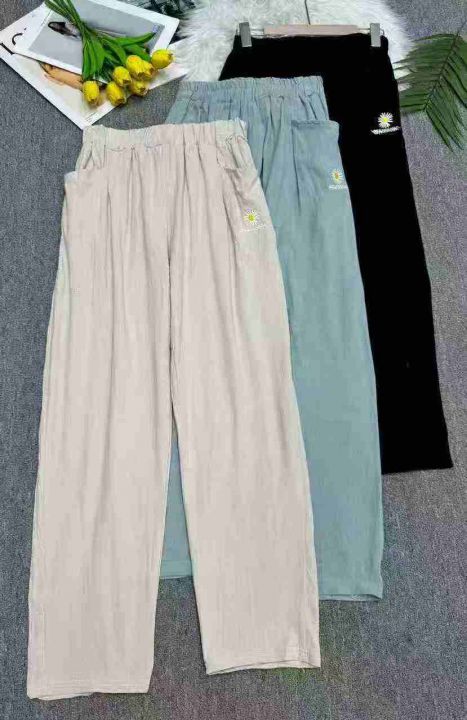 捡漏309条刺绣菊花麻棉休闲修身女裤冰丝直筒裤,独立包装,码数M-3XL(1-5),大货图四款为主,货号118#4
