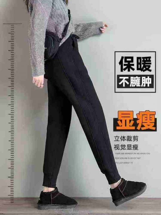 8.8清200件女纯棉高腰加绒运动卫裤女秋冬新款加厚加羊羔绒卫裤休闲束脚冬季外穿羊羔绒棉裤子 码数S-M 独立包装