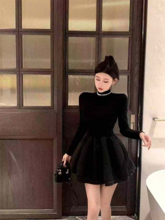 气质半高领连衣裙228件9.9,面料高弹力,拼接设计,收...