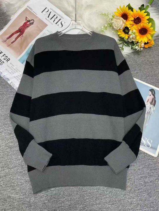 秋冬新款宽松慵懒风撞色条纹北极绒套头毛衣,独立包装,面料软糯厚实大版型...