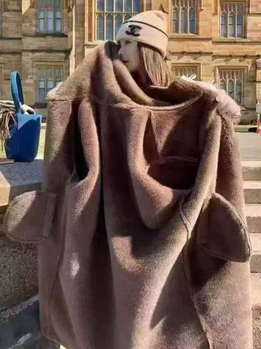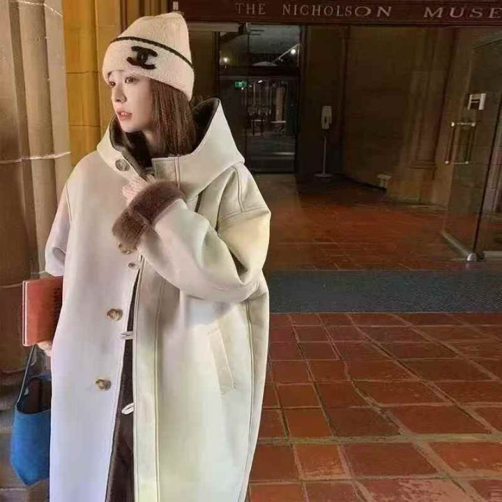 2025年新款连帽长款鹿皮绒皮毛一体内里保暖大衣毛茸茸...
