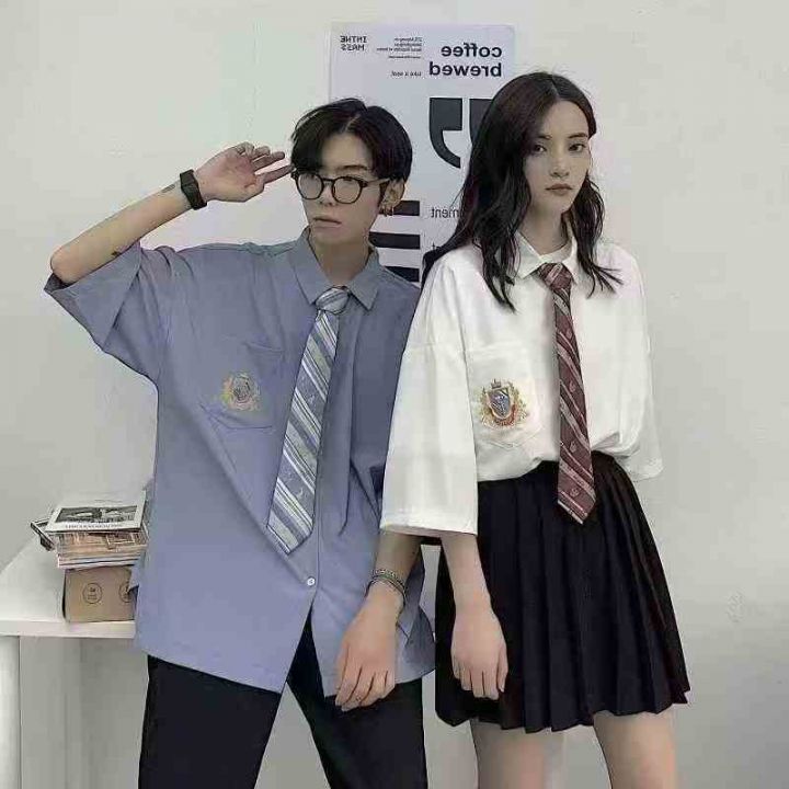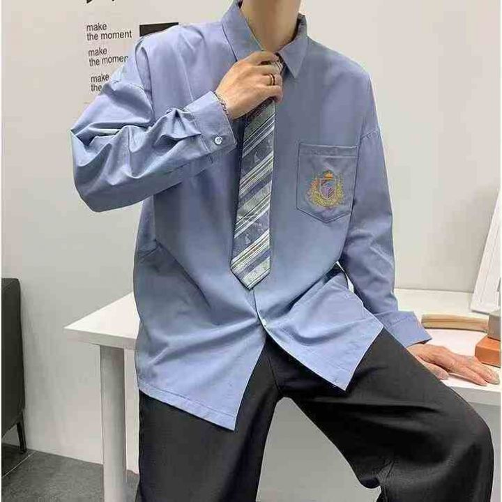 4.8清1358件男dk制服原创长袖衬衣学院风刺绣jk衬衫港风 长袖多短袖比较少码数M-XXL 独立包装 包装里送领带一条