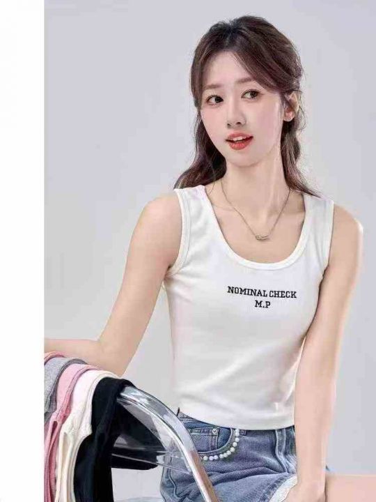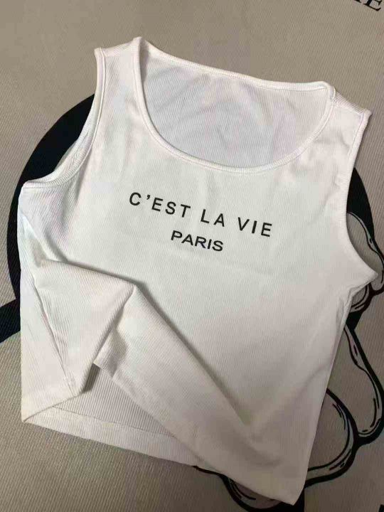 4.8清340件靓妹辣妹无袖字母印花白色吊带打底背心女遮副乳小个子修身百搭短款上衣 码数S-XL 独立包装