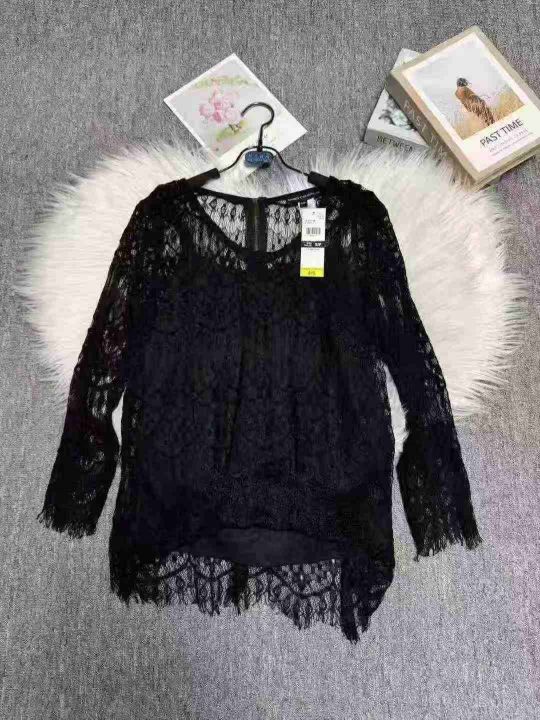 洋气高档网纱蕾丝上衣两件套,整款三色(黑色为主),品质好带吊牌,数量890件左右,码数s-3xl,独立包装,全清5.5,分货0.5