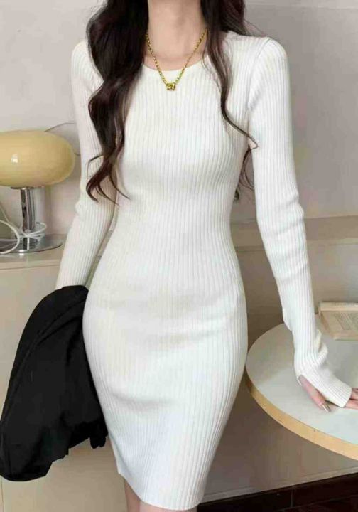 秋冬新款弹力修身显瘦坑条圆领毛衣连衣裙,独立包装,...