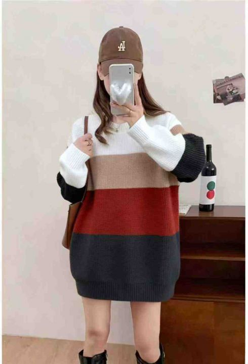 秋冬新款宽松慵懒风撞色条纹北极绒套头毛衣,独立包装...