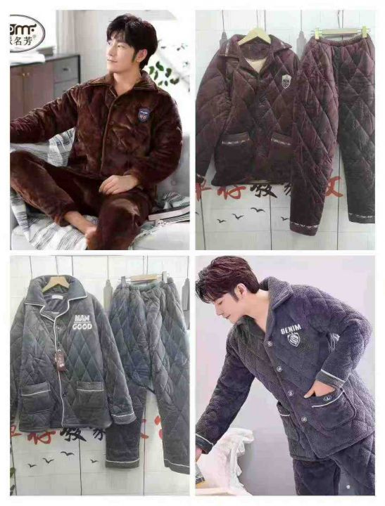 [福]冬季加厚男女睡衣珊瑚绒三层夹棉加绒保暖秋冬法兰...