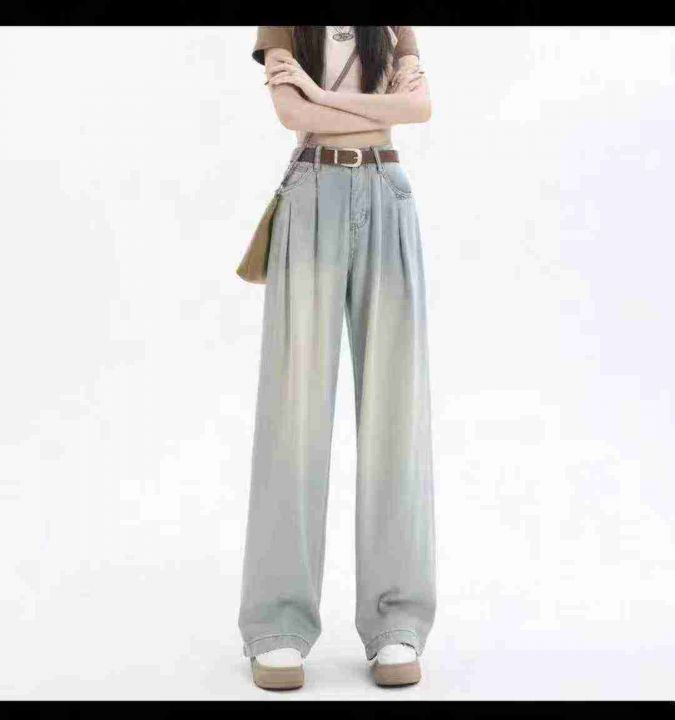 复古垂感阔腿薄款拖地阔腿牛仔裤,单款单色,数量700...