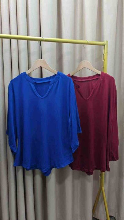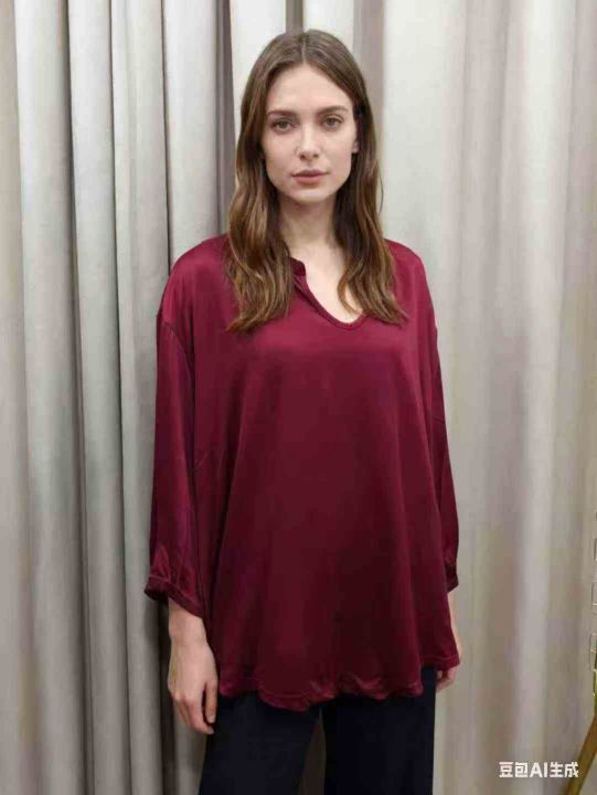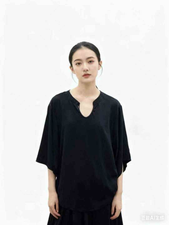 外贸款小V领七分袖T恤女早秋季大码胖mm内搭打底衫不规则上衣