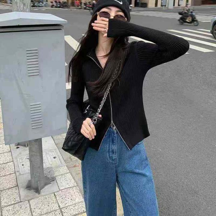 秋冬新款美拉德色系韩版弹力宽松百搭双头拉链针织毛衣...
