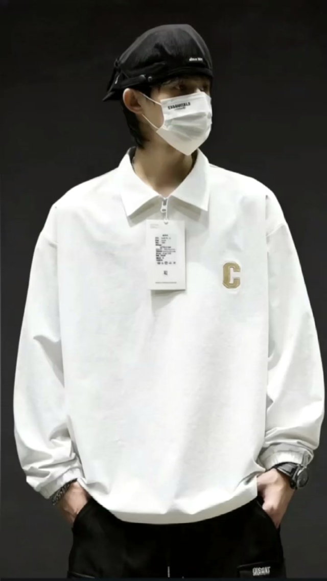 12.8清,350件美式复古半拉链Polo领衬衫男宽松速干大码套头外套,视频小整...