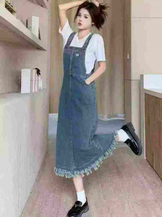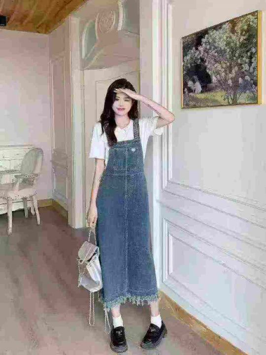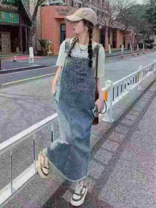 ☕️整款背带牛仔长裙333条全清14.8元,分货+1元,码数S到XXL,独立包装,设计感后开叉牛仔背带裙女夏新款中长款宽松牛仔连衣裙