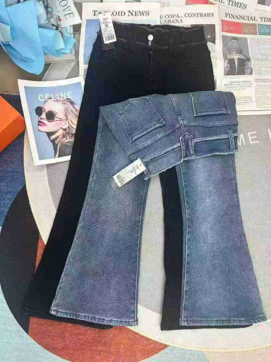 微喇加绒弹力高腰显瘦牛仔裤,整款2个颜色,独立包装...