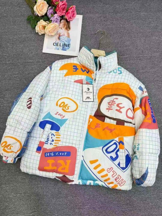300左右\'两面穿涂鸦立领棉衣女冬季潮流chic加厚棉袄...