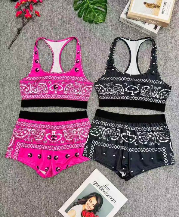 5.5清欧美跑步瑜伽健身印花背心短裤两件套,数量:160...