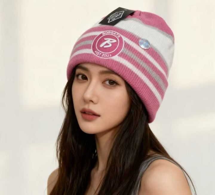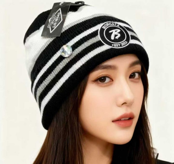 18D韩版女士条纹毛线帽,两个颜色,双层加厚,高弹力...