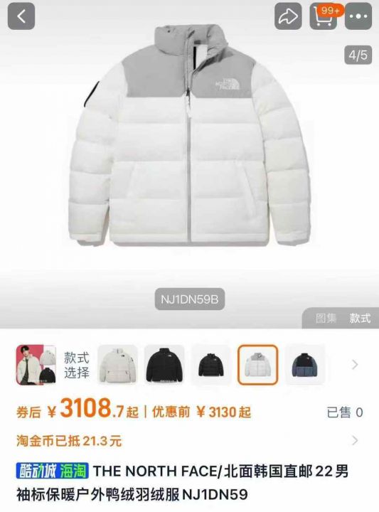 潮牌北面1992情侣款羽绒服30周年徽章限量款,2色,S-2...