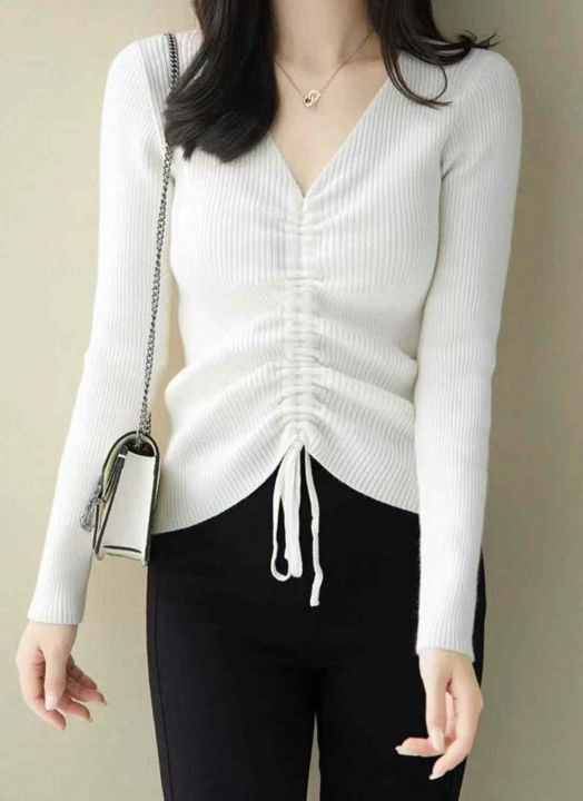 秋季新品韩版V领抽绳设计款包芯纱套头毛衣,独立包装,均码面料软糯舒适弹力大,375件,全清6.9元超低价秒杀!分货加一!