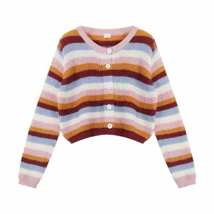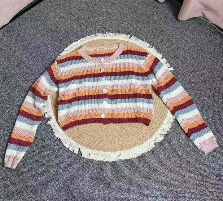 2025秋冬新款潮毛衣女显瘦休闲彩条针织外套开衫,独立包装,均码,418件,清8.8,分➕1