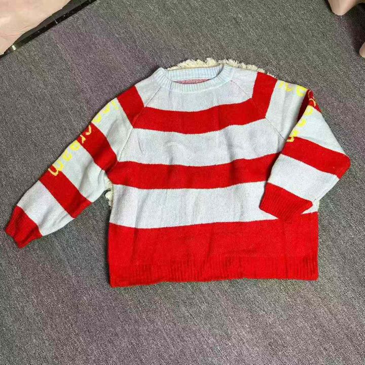 女装秋冬款复古撞色条纹ins港风大版厚重宽松毛衣针织衫上衣,独立包装,均码,633件,清8.8,分➕1
