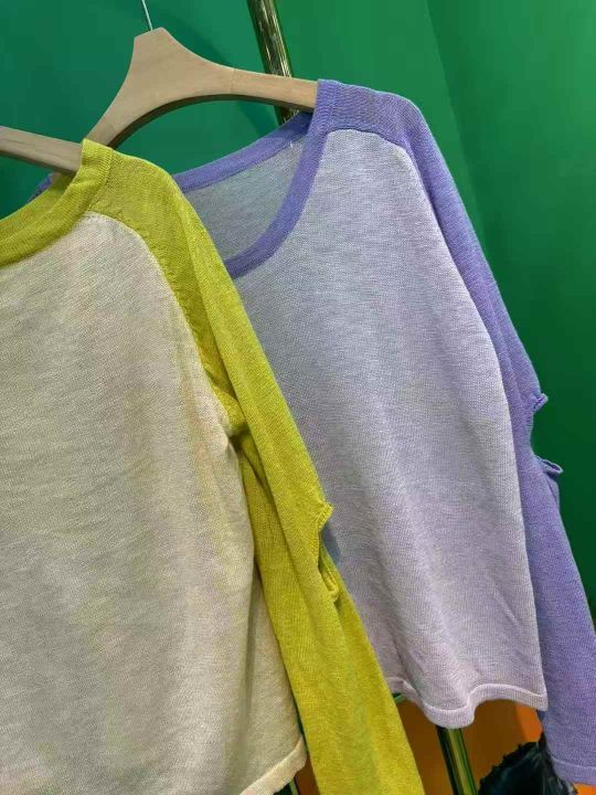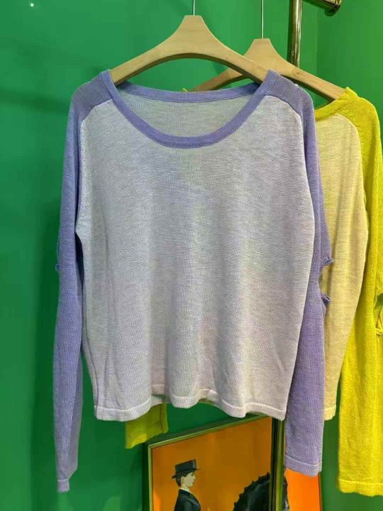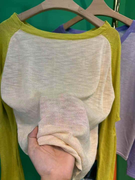100件左右靓妹韩系休闲薄款透气显瘦撞色插肩袖防晒罩衫长袖T恤,均码,独立包装!全清8.5