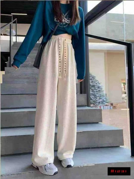 405条白色休闲高腰加绒裤子女装秋冬季直筒束脚卫裤,整款3个颜色,独立包装...
