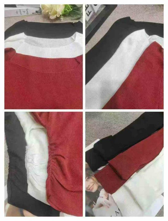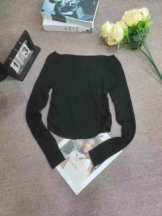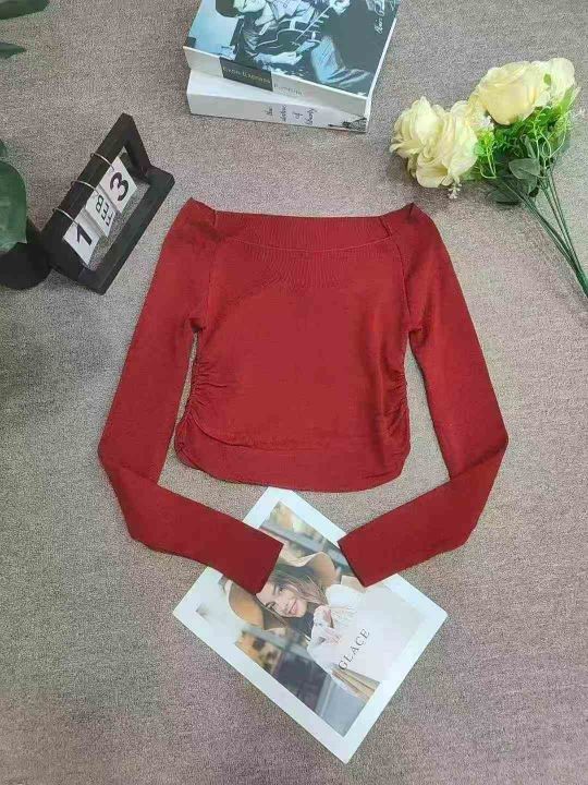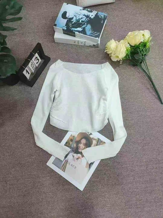 一字肩纯欲小众露肩修身显瘦内搭打底衫百搭褶皱长袖针织衫,120件,清6.5