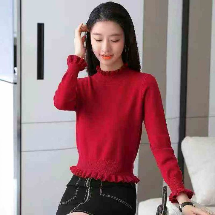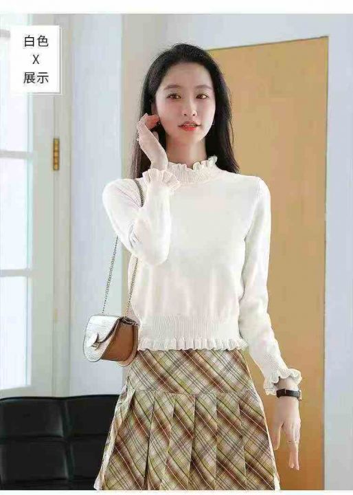 包芯纱收腰木耳边打底毛衣长袖半高领2025年秋冬内搭修身针织毛衫,独立包装,四个颜色,271件,清6.99元,分货加5毛