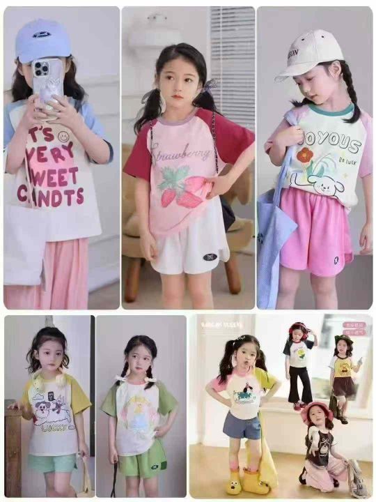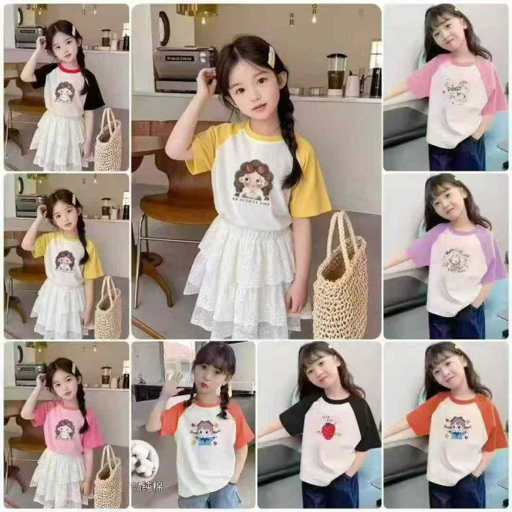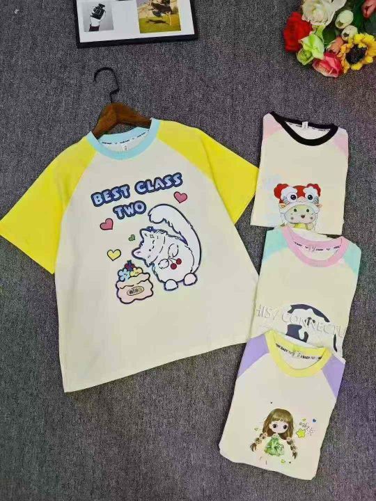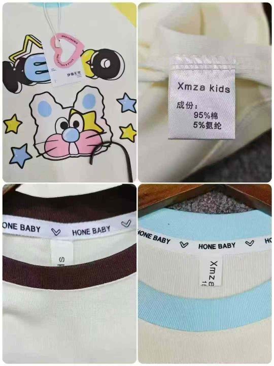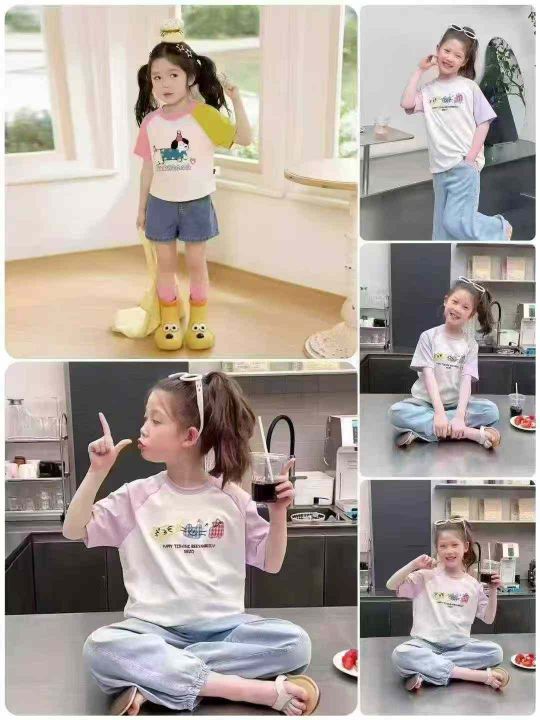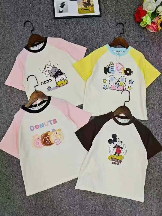 天猫仓回收650件卡通可爱插肩袖儿童纯棉短袖T恤,码数90-150。纯棉面料柔软舒适,版型质量都特别好,货品超好,带纸板独立包装。